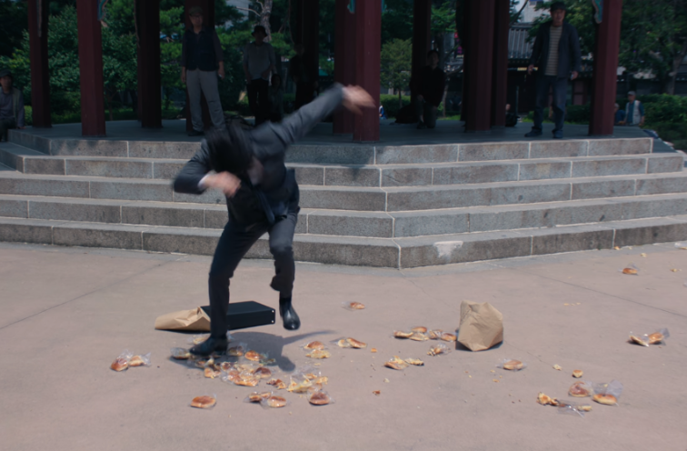딱지남은 지하철 딱지치기뿐만 아니라 탑골공원에서도 노숙인을 상대로 거부할 수 없는 게임을 제안하며 사이코패스와 같은 행각을 펼칩니다.