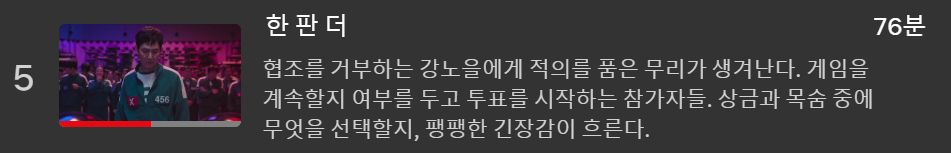 | 오징어게임 시즌2 6화 줄거리 요약 및 다시보기 (0) | 2025.01.02 |